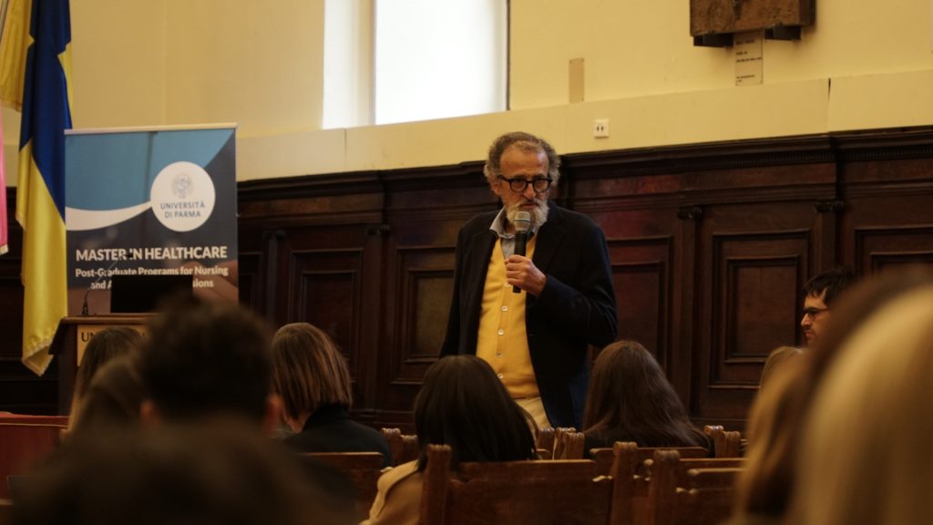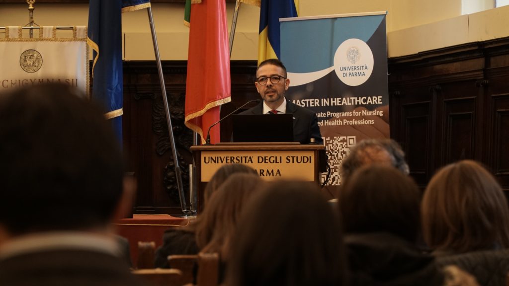 The day opened with institutional greetings from Prof. Antonio Bonacaro, Associate Professor of Nursing Sciences at the University of Parma and President of the Master’s Programs in Healthcare, who highlighted the value of a continuously growing educational project, capable of engaging an increasing number of professionals from different areas of the health and social care system each year. Prof. Bonacaro emphasized how the Master’s programs represent a space for the development of advanced competencies, designed to address the emerging needs of contemporary healthcare through pathways structured across clinical, community, managerial, educational, and innovation areas.